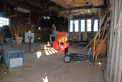 So right before crossing the bridge to Plum Island there is this weird building with the words NO EVACUATION POSSIBLE painted on one side. My natural creepy curiosity was piqued and so on the way home we stopped so I could take some photos. The place was awesomely derelict and I got the shot of the inside by leaning over the rotting steps and sticking my camera in the hole in the wall next to the front door and just waving my camera around taking a few random shots unable to actually see what was inside. I'm not sure if you can tell from this size of the photo, but there appears to be a washing machine in the back, several gas canisters around the mismatched chairs in the middle, and a milk crate full of magazines.